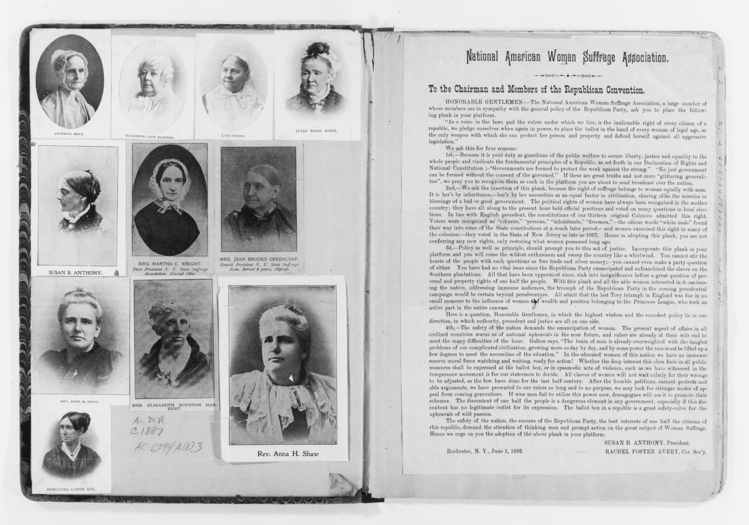 Library of Congress, Manuscript Division, Susan B. Anthony Papers.
