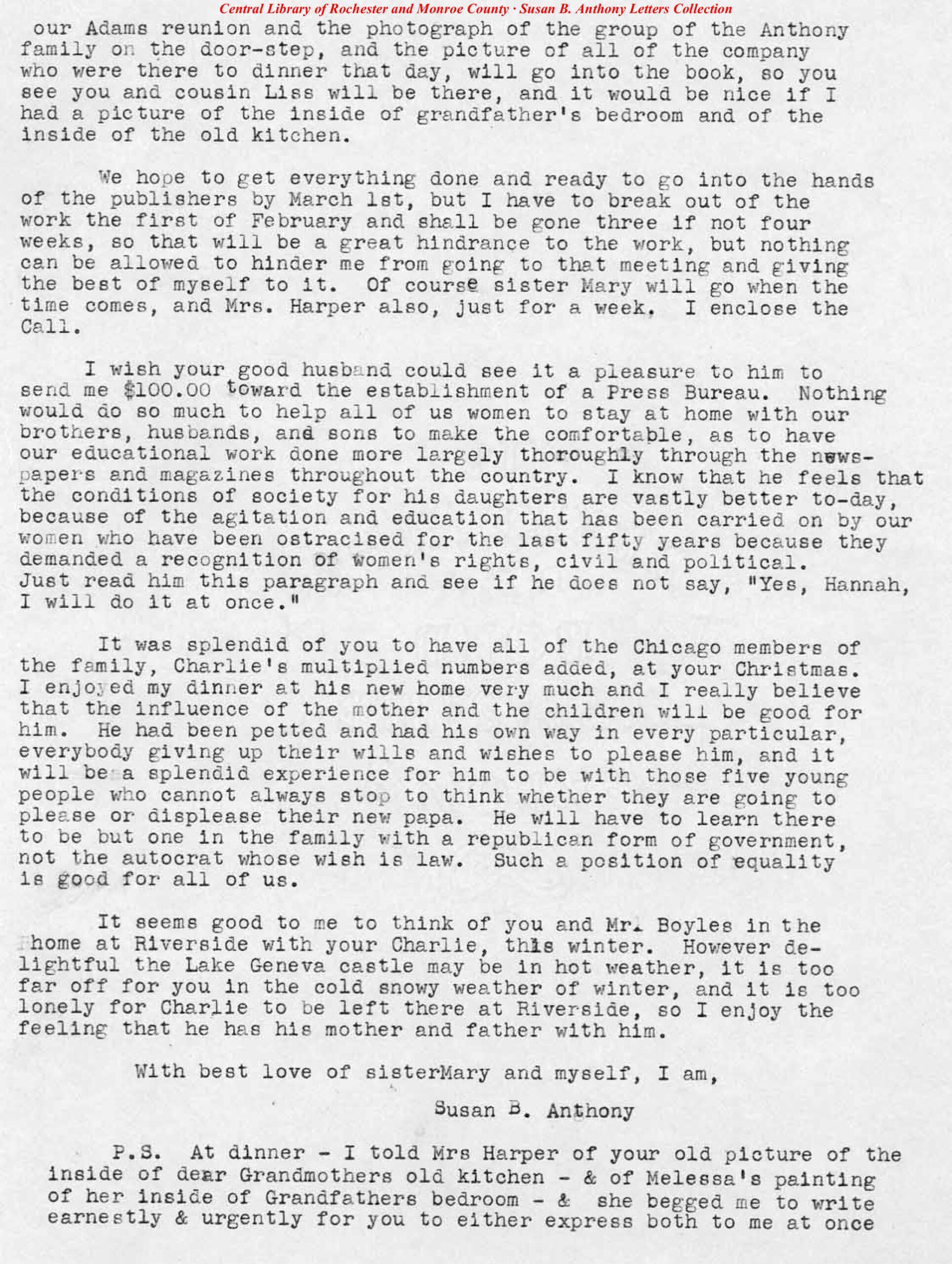 SBALetter_DonationRequest_1897 Download Download is available until [expire_date] Version Download 2 File Size 693.18 KB File Count 1 Create Date February 25, 2025 Last Updated March 14, 2025 SBALetter_DonationRequest_1897 NAWSA Letter “To the Chairman and Members of the Republican Convention…” (June 1892) Susan B. Anthony Discussing “a Speaker Who Will Inspire Audiences” (1898)